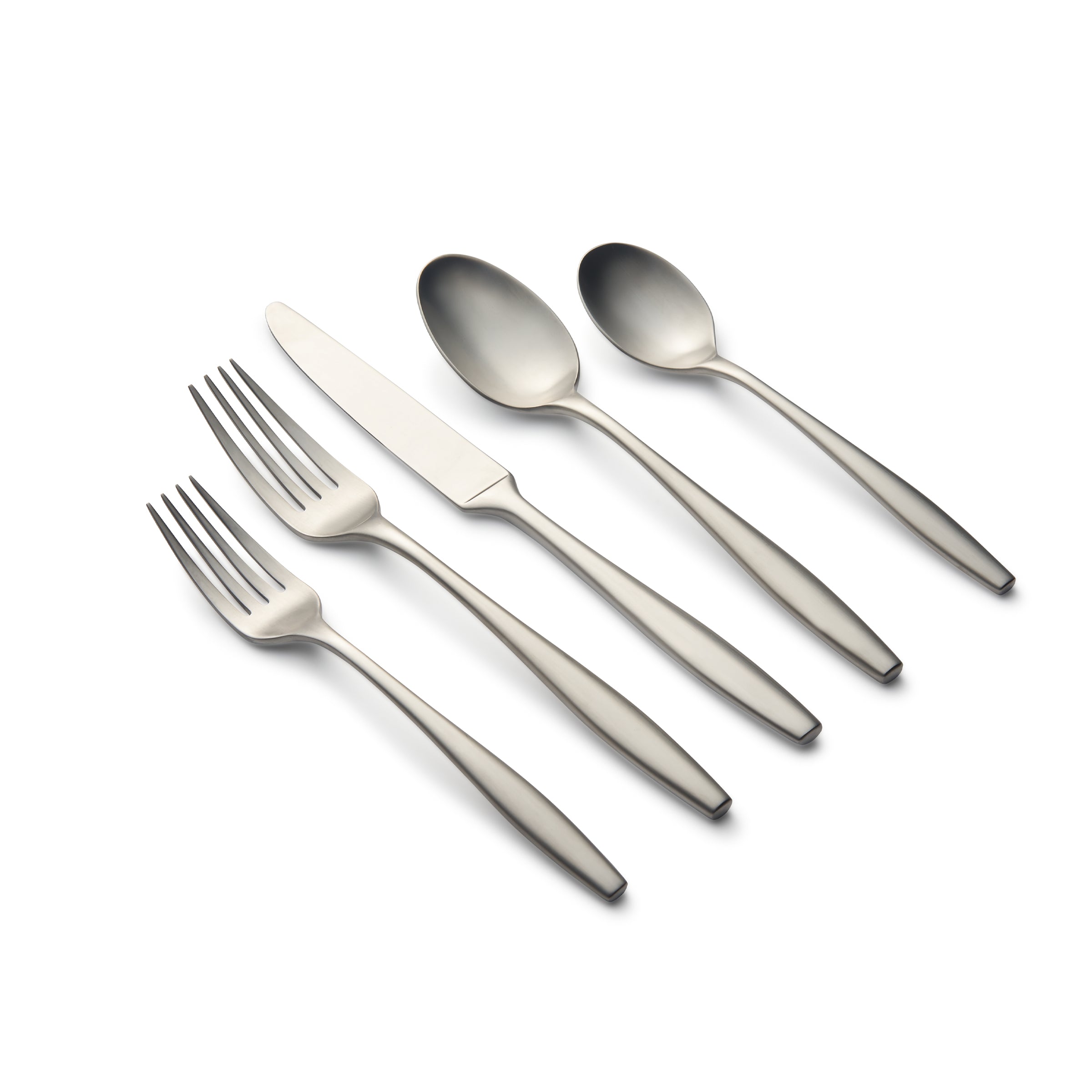 20-piece service for 4 forged using the highest quality 18/10 stainless steel. Features a modern design with sleek rounded handles in a sophisticated satin finish.