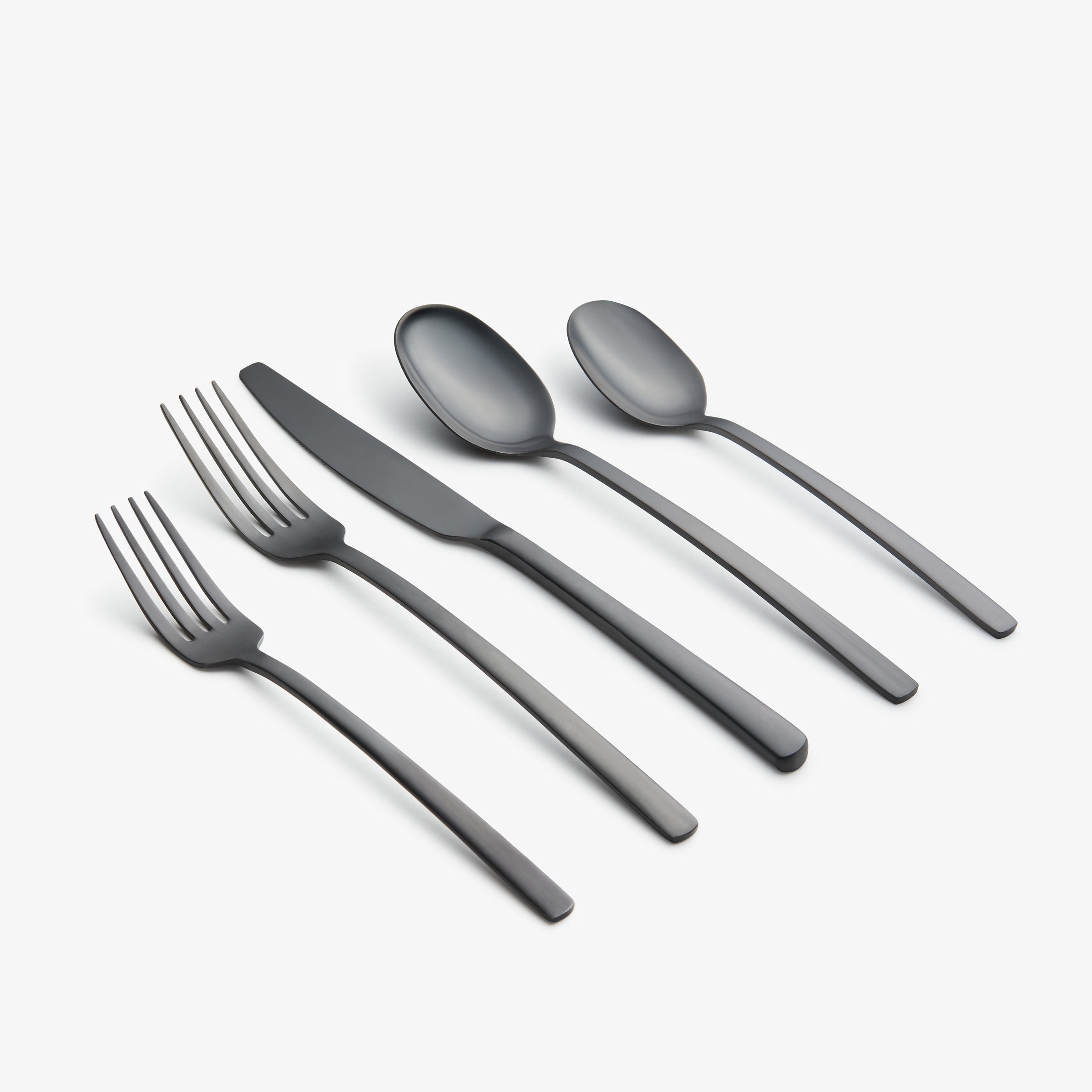 Designed with clean lines and modern proportions. This 20-piece service for 4 features a sophisticated black satin finish.