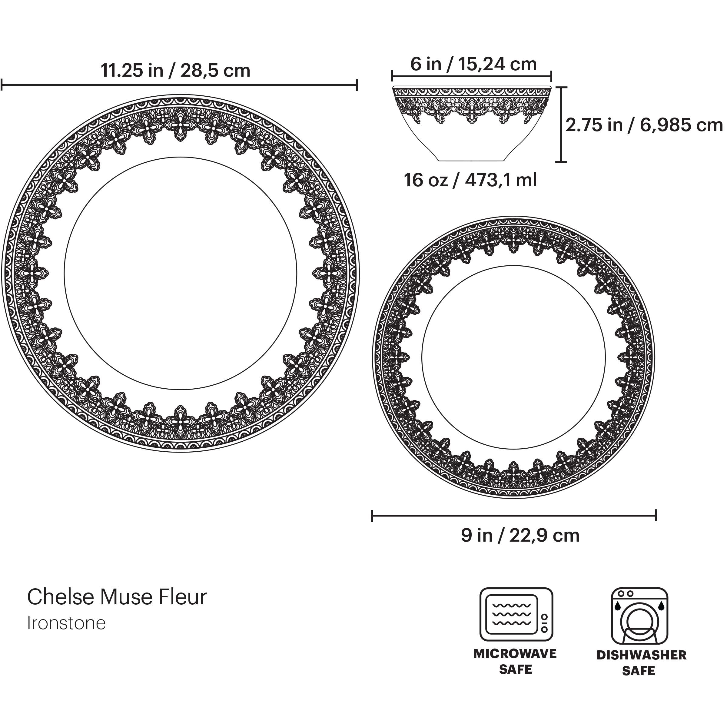 Chelse Muse Fleur White 12-Piece Dinnerware Set
