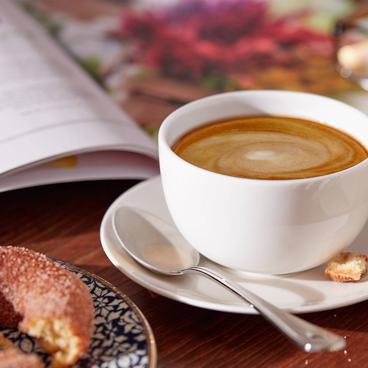 The bone china Dual Saucer brings something special to the table. The inspired design provides many solutions for every serving need.