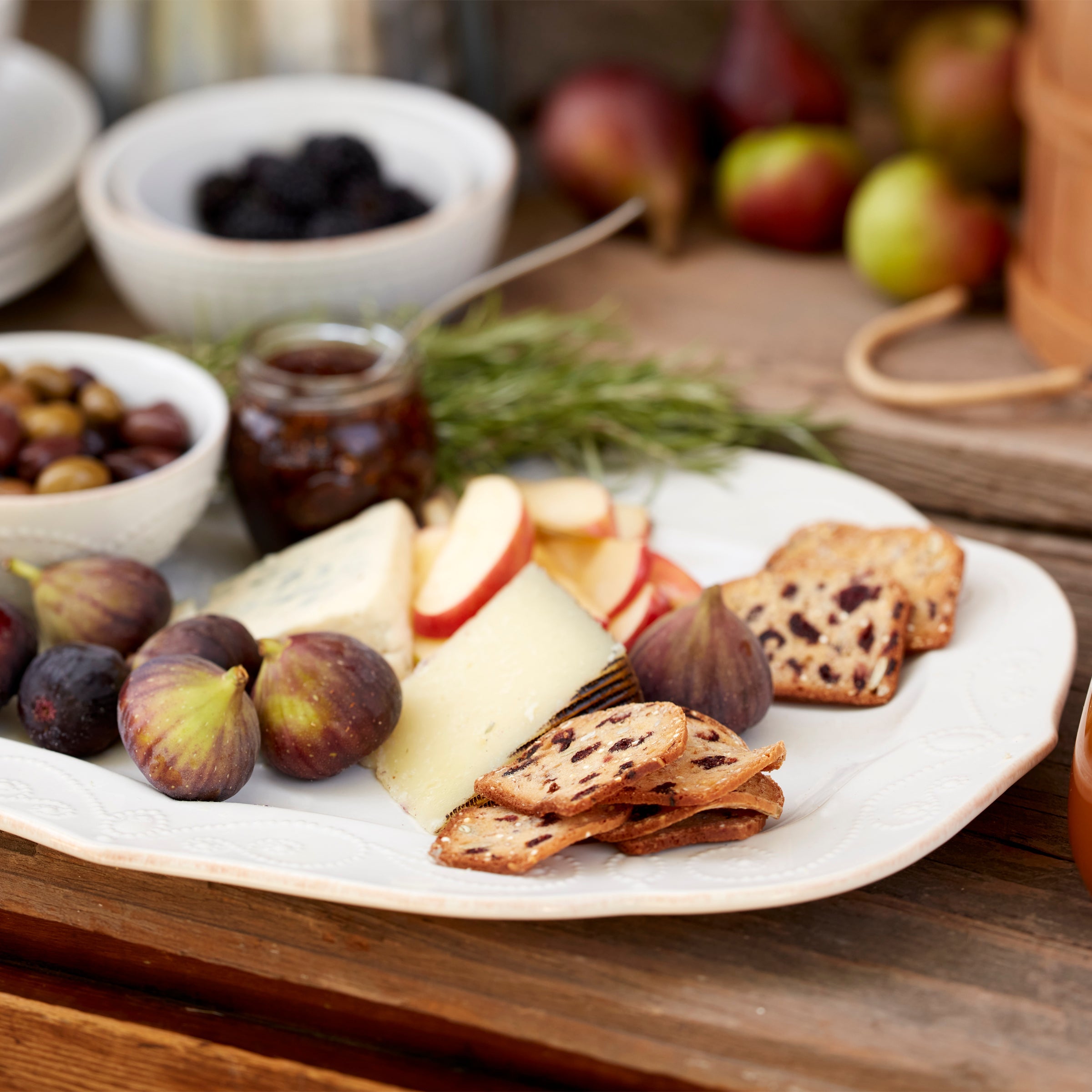 This rustic large oval platter. crafted of durable ceramic stoneware in a crisp. clean white. includes a textured pattern of scrolled and swirled beads along its subtle hand-applied tea-stained rim. This item is microwave and dishwasher-safe. for added convenience.