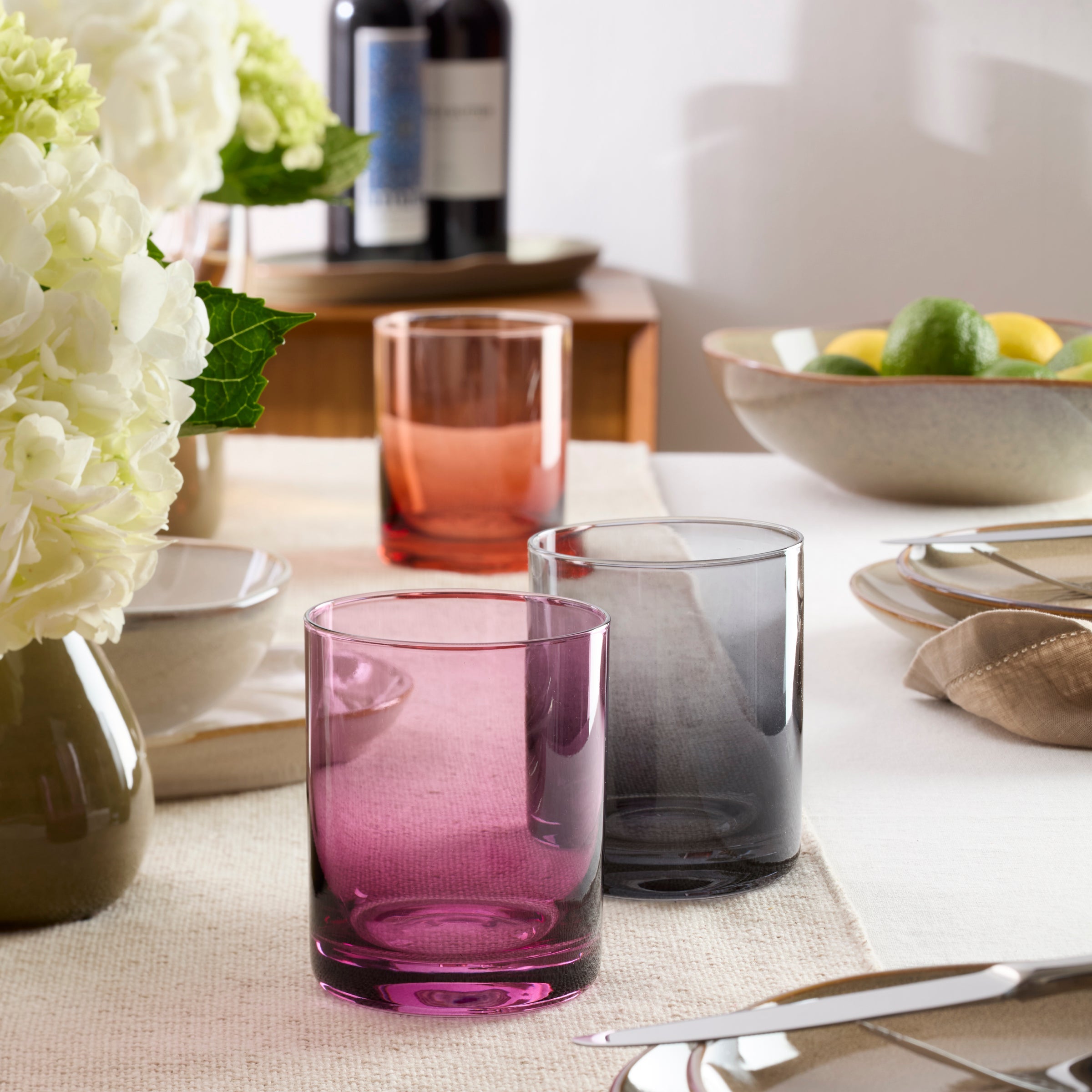 Saturated jewel tones borrowed from summer sunsets are the perfect match for impromptu parties on the rooftop deck. Whether it’s mimosas at brunch or cocktails after dark. the event is instantly elevated by Golden Hour’s refreshing ombre double old-fashioned glasses.