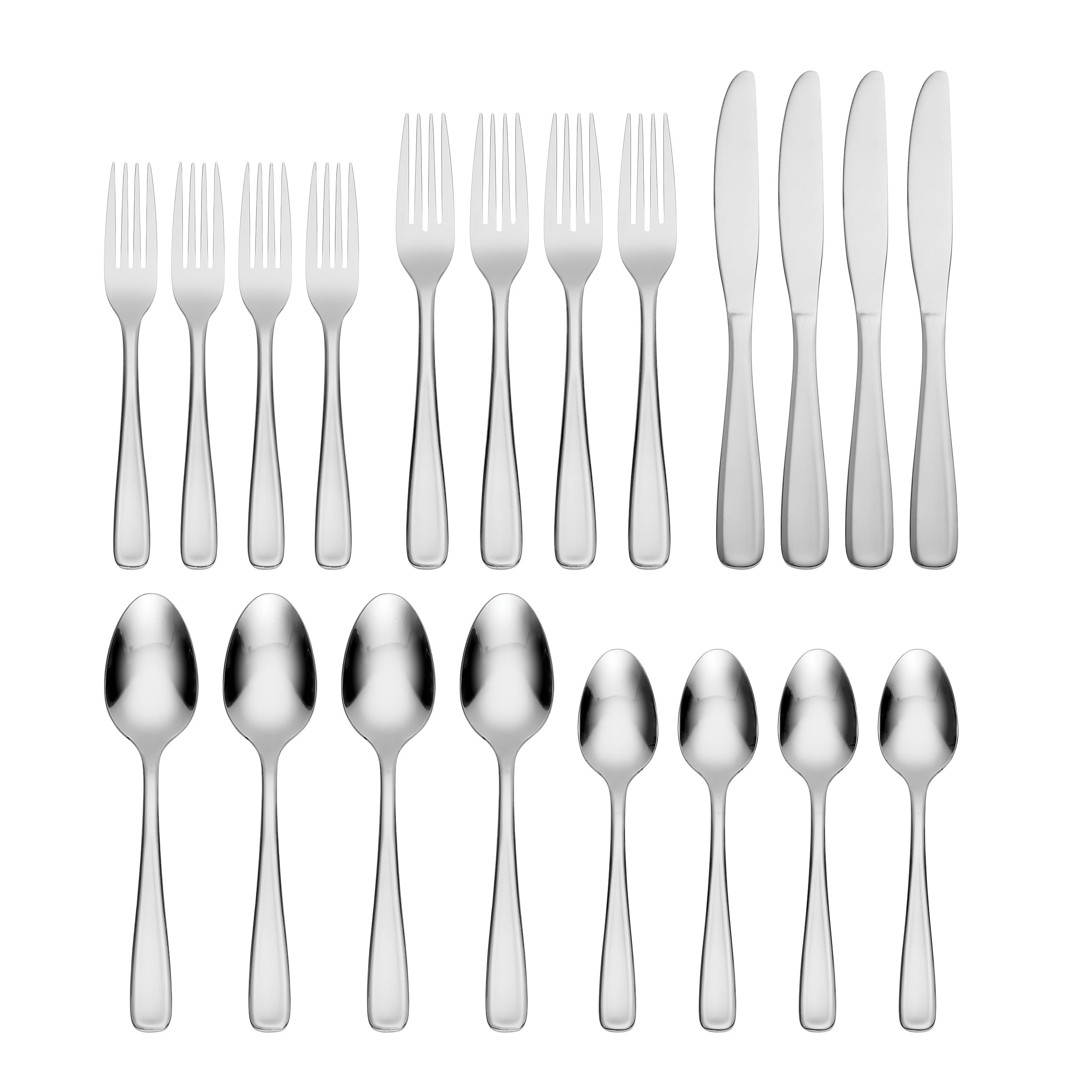 Arrange your table for a meal to remember with the Justine Mirror Flatware Set by Hampton Forge. Crafted from versatile stainless steel and defined by a gently curved silhouette. subtle depth and polished to a mirror finish. Justine offers a transitional vibe complimenting both traditional and modern tabletops alike.