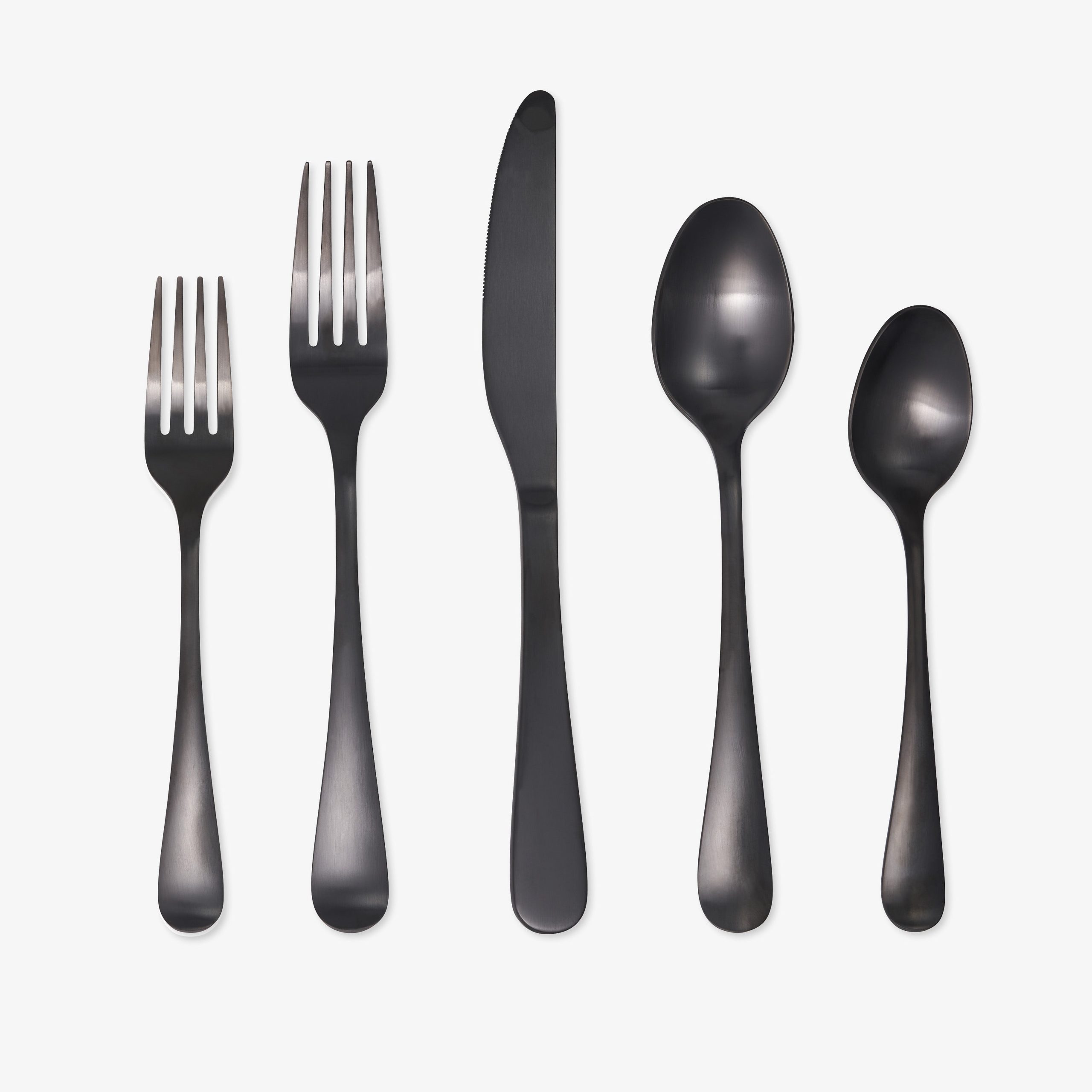 20-piece service for 4 with a comfortable and modern handle featuring a brushed black satin finish.