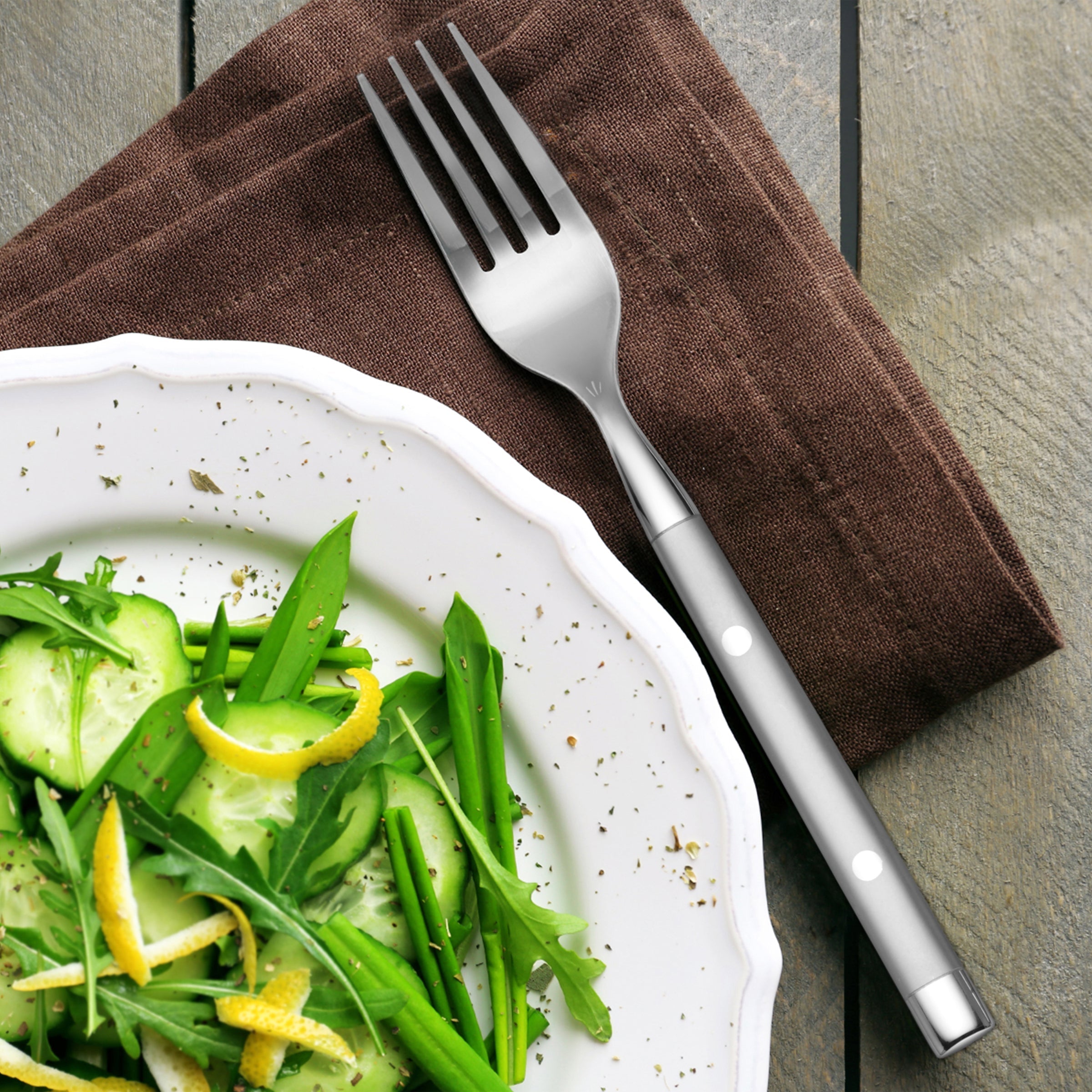 Fresh and frosted. Every fashionable tabletop needs simple complimentary accents. Mechanically inspired. the Shangri-la Frosted Flatware Set by Hampton Signature will elevate your dining experience with a hint of exotic. Its slim handles accented with frosted and polished finishes are reminiscent of furnishings in far-away places. yet familiar enough that it feels right at home.