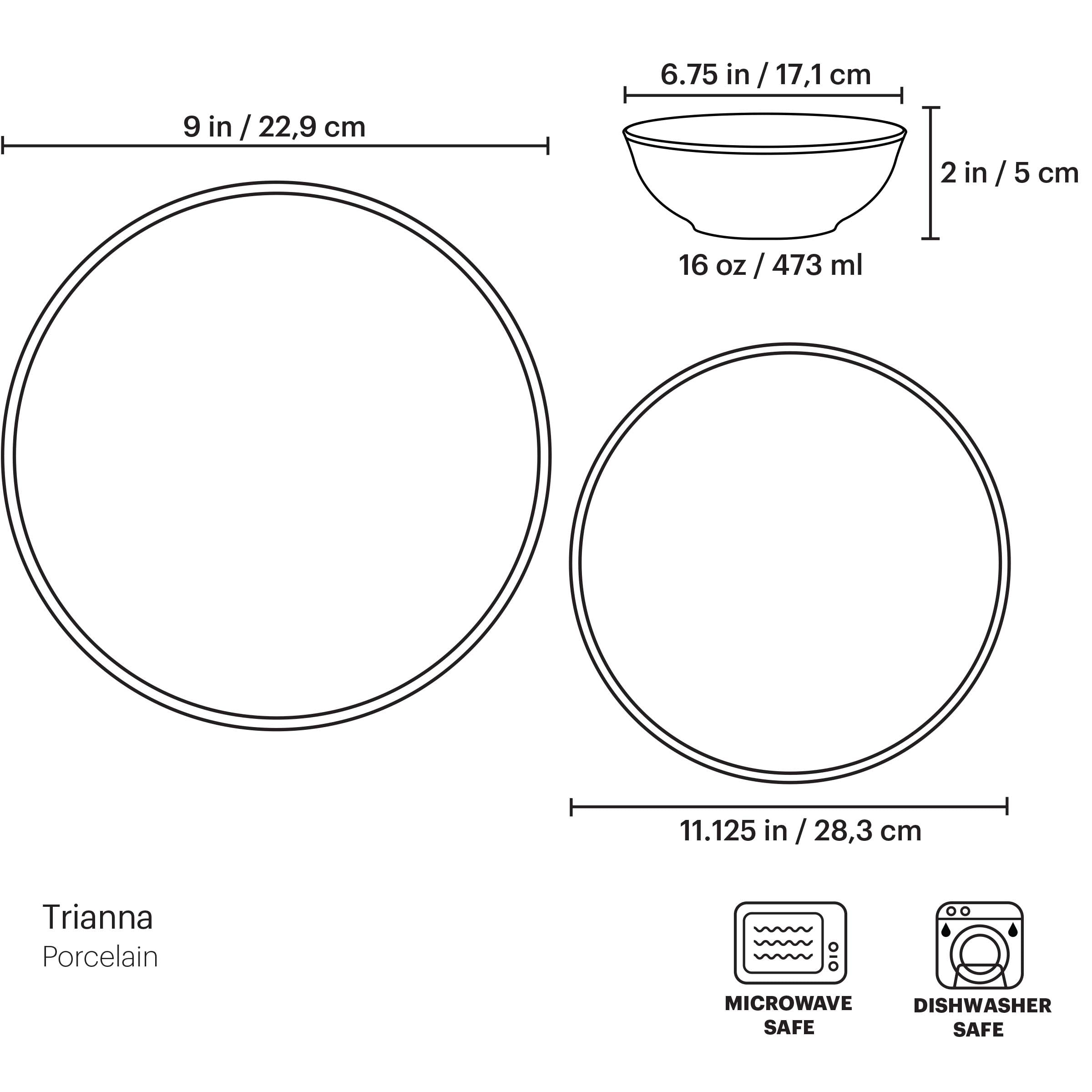 Featuring microwave-safe gold accents along the rim. this 12-piece dining set gleams in white while the salad plates include a fun geometric patterned with a hint of bronze and cream for a fun pop of color at the table. Crafted of durable ceramic porcelain. this item is dishwasher-safe. for added convenience.